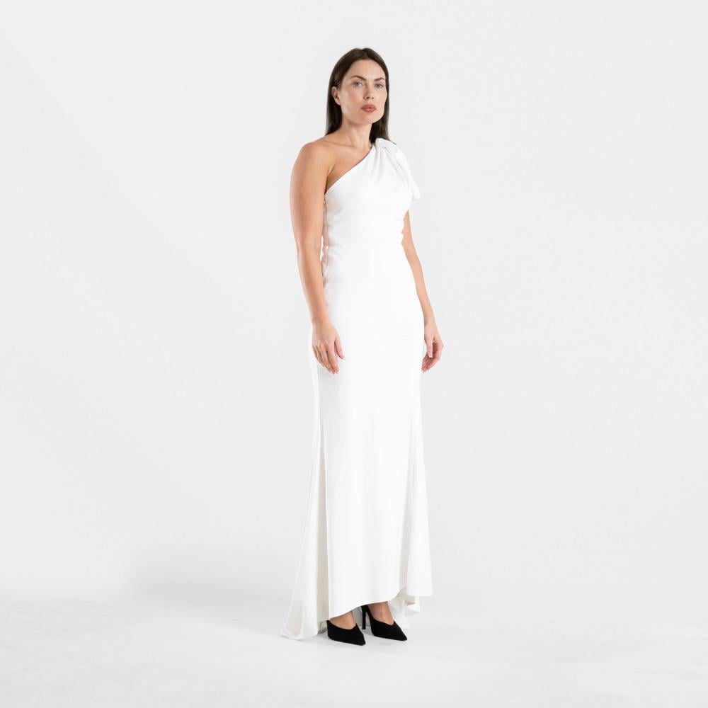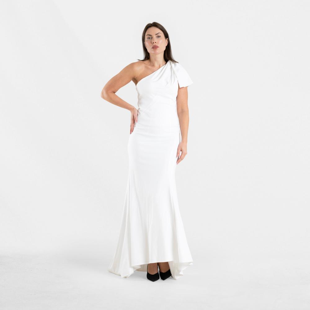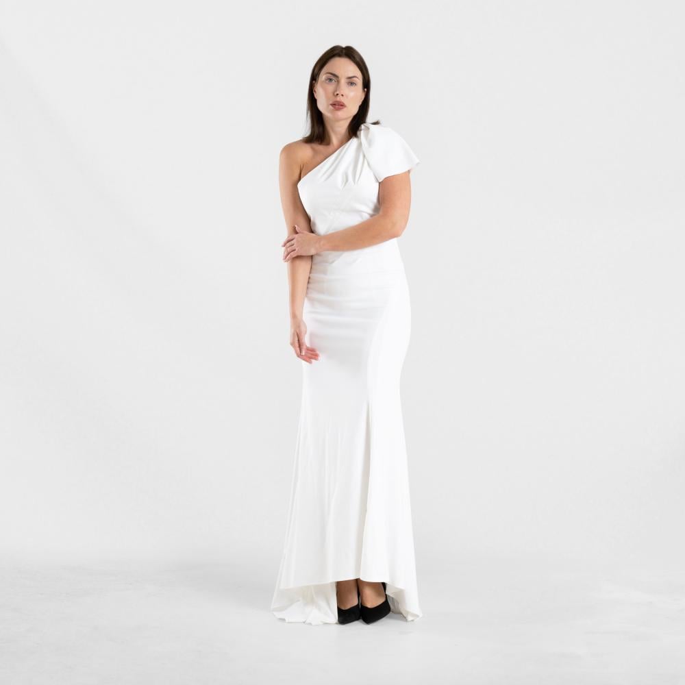 فستان سهرة أبيض طويل بكتف واحد لإطلالة ساحرة