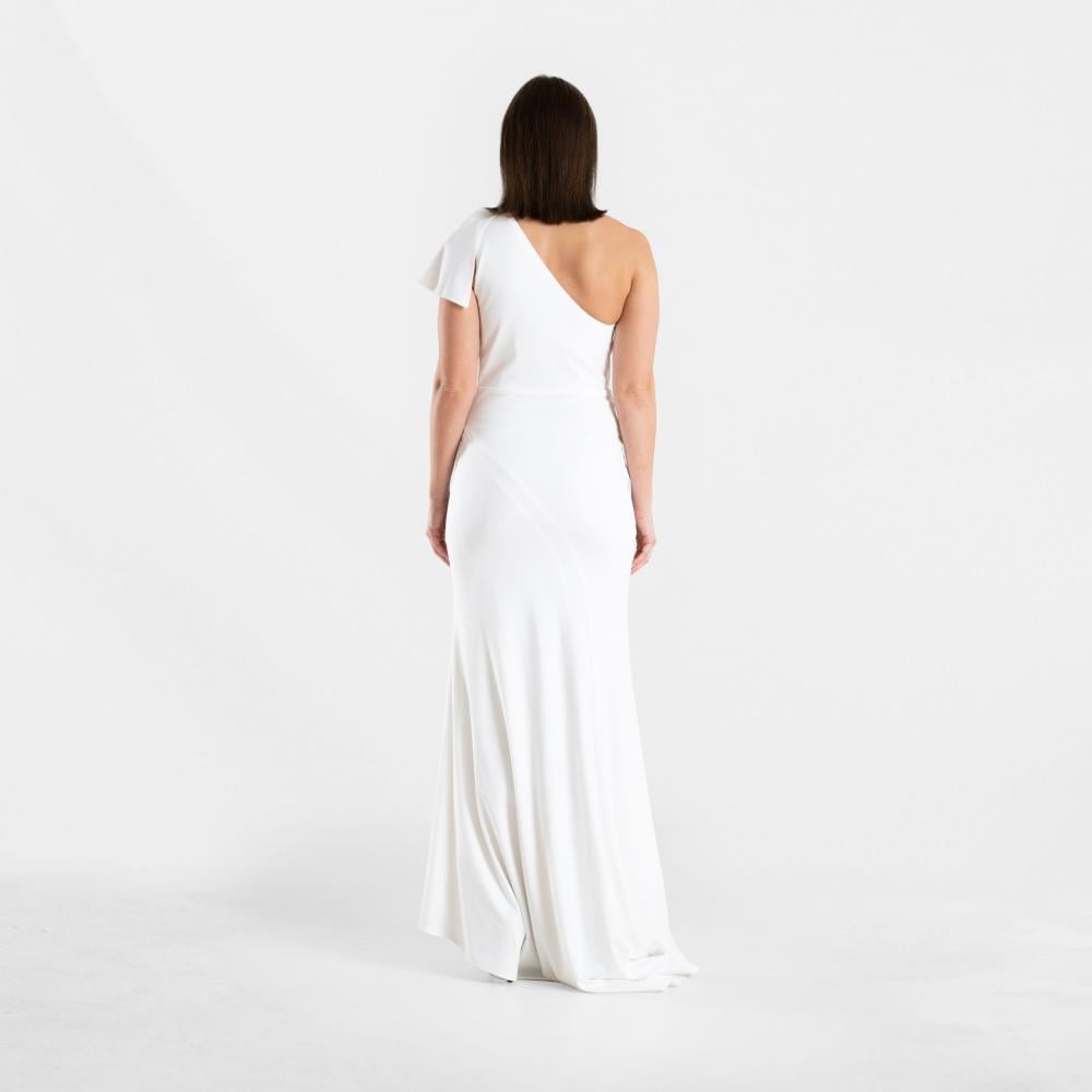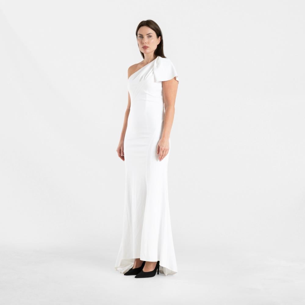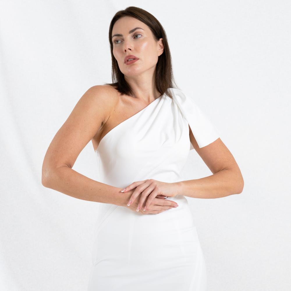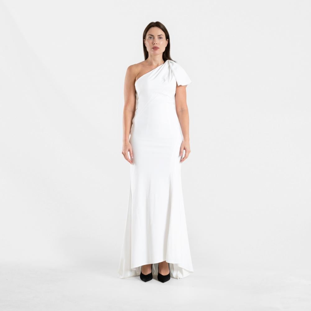 فستان سهرة أبيض طويل بكتف واحد لإطلالة ساحرة