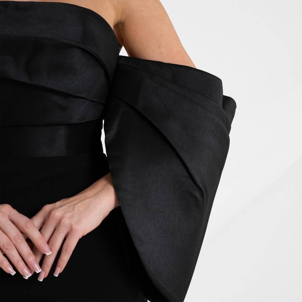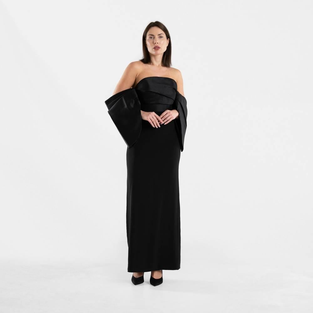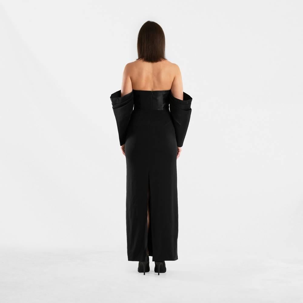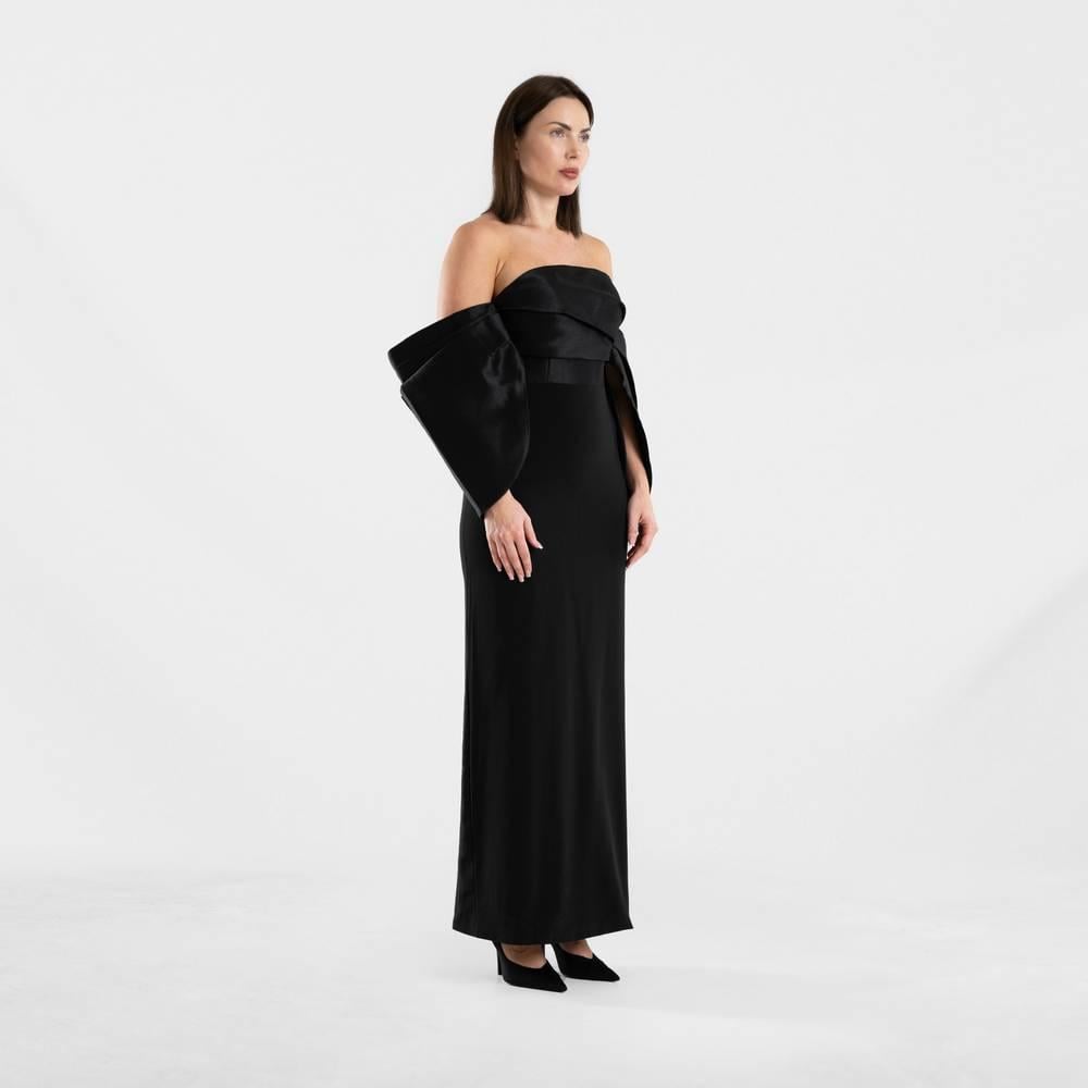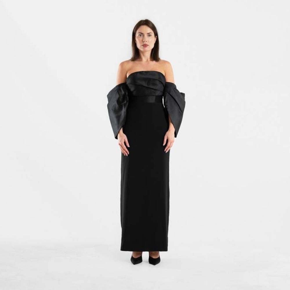 فستان سهرة أسود أنيق بأكمام منسدلة