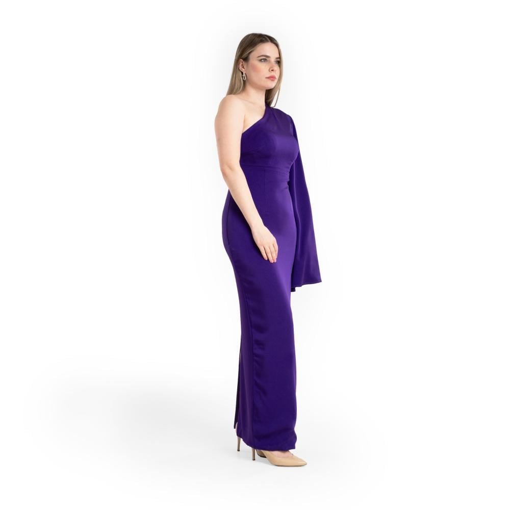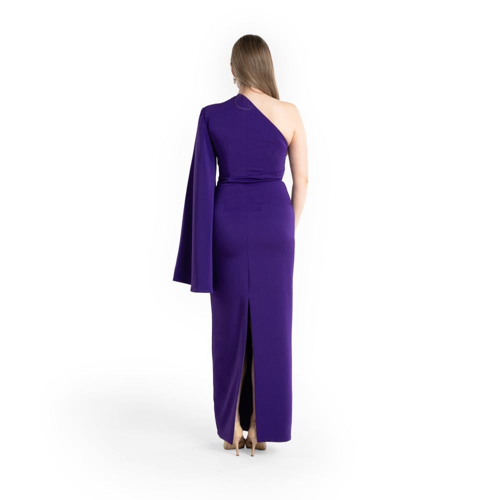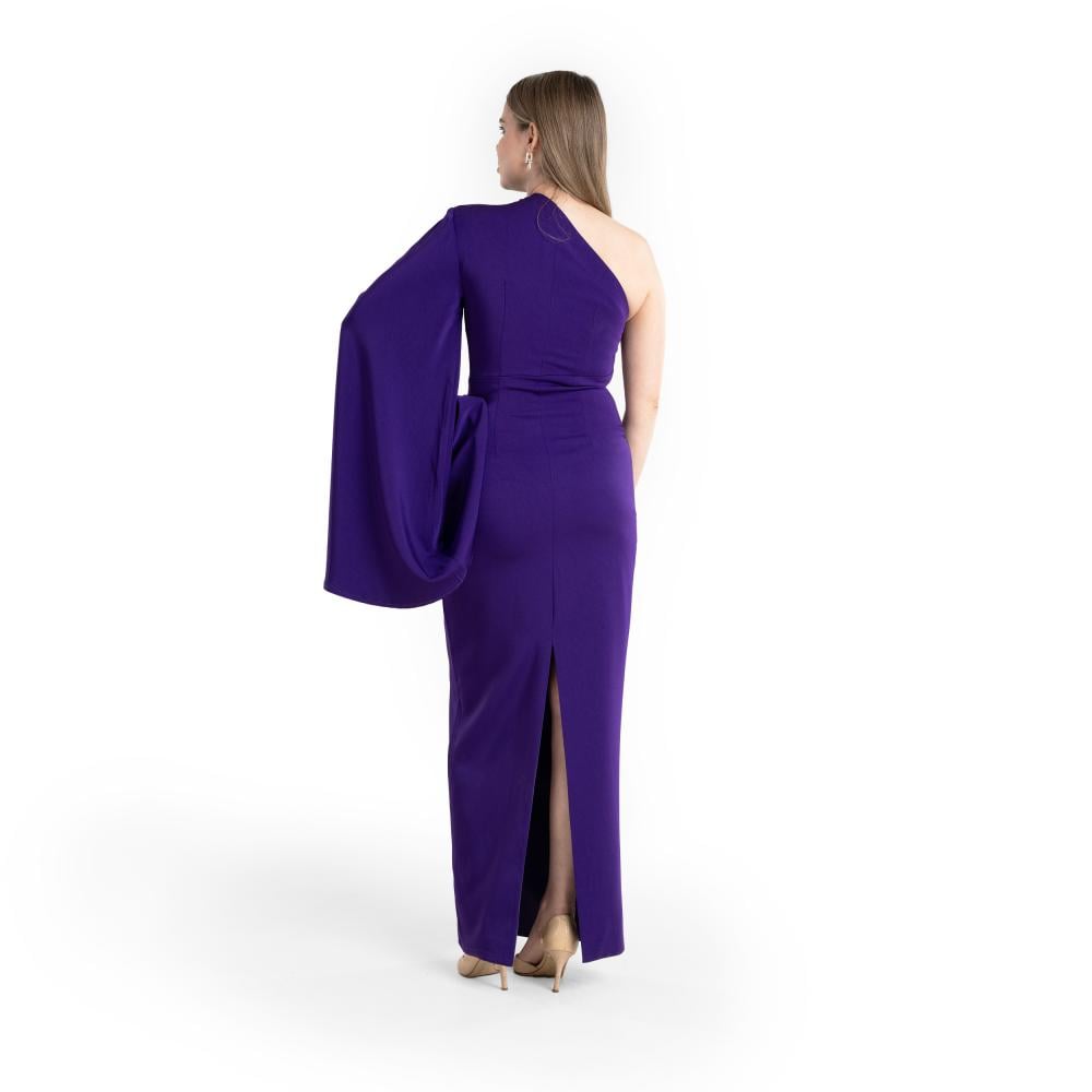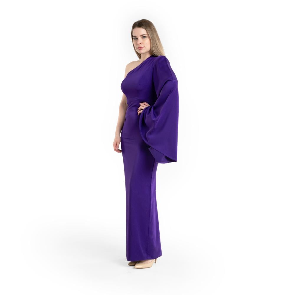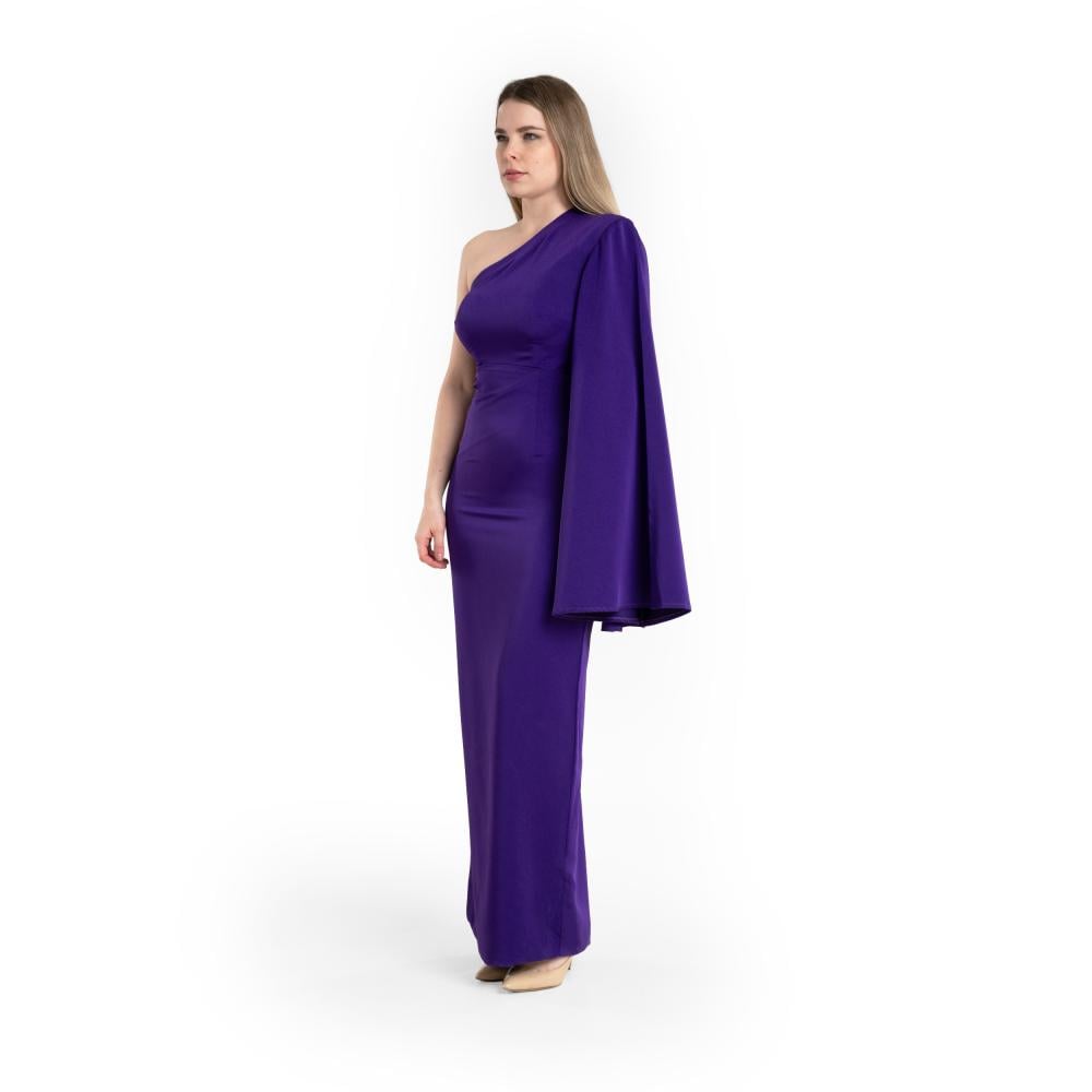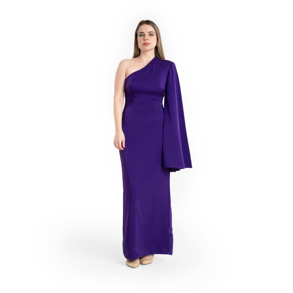 فستان ماكسي بنفسجي ون شولدر وكم طويل منسدل وواسع: